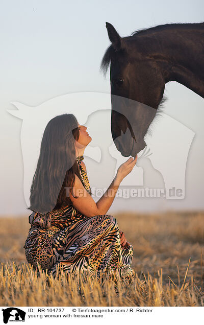 junge Frau mit Friesenstute / young woman with friesian mare / RR-104737