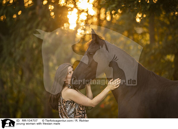 junge Frau mit Friesenstute / young woman with friesian mare / RR-104707