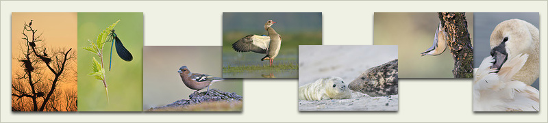 Sie finden unter anderem Graureiher, Blauflügel-Prachtlibelle, Buchfink, Nilgans, Kegelrobbe, Europäischer Kleiber und Höckerschwan.