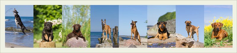 Sie finden: Border Collie, Deutscher Schäferhund, Labrador Retriever, Malinois, Mischling und Rhodesian Ridgeback.