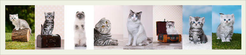 Darunter sind folgende Rassen: Britisch Kurzhaar, Highlander und Thai.