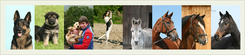Sie finden: Deutscher Schäferhund, Golden Retriever, Jack Russell Terrier, Esel, Warmblut, Mix und Trakehner.